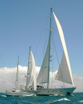 Tauranga (pictured at right being dwarfed by the mega-yacht Takapuna)